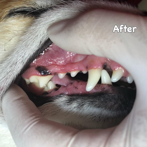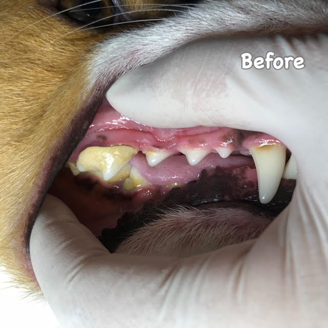 症例:ハルちゃん。おやつが大好きな可愛い女の子です^^奥歯の大きな歯石が取れてすっきりしたね♪