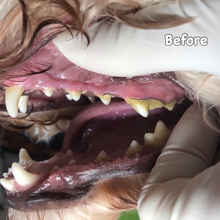 症例:ムームーちゃん。ママが口臭を気にしてご来店♪ケア後は臭わなくなった!と喜んでいただけました。ムームーちゃん頑張ってよかったね^^